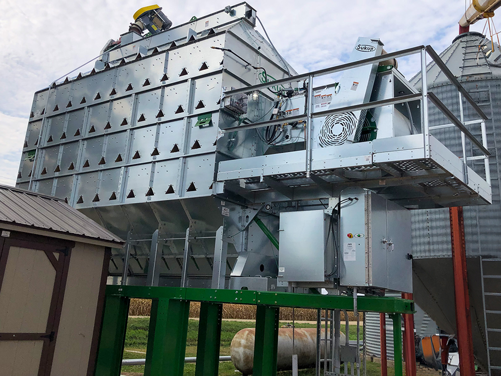 The Sukup Full-Heat Mixed-Flow Dryer is engineered to enhance the grain drying process, optimizing both capacity and quality. Unlike traditional cross-flow full-heat dryers, this unit features wide 30-inch grain columns that accommodate more grain in process compared to 14” or narrower cross-flow columns. While holding more bushels, the grain is dried slowly and only uses about half the airflow per bushel. Since full-heat dryers only heat the grain, the grain is cooled over 24-48 hours in a grain bin, lowering the potential for stress cracks in the kernels and promoting better grain quality.